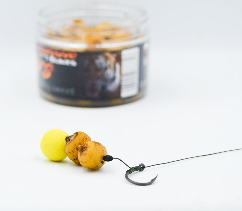 - Orzech tygrysi – przynęta dla cierpliwych. Twardy, selektywny i lubiany przez większe sztuki. Drobnica nie daje sobie z nim rady.